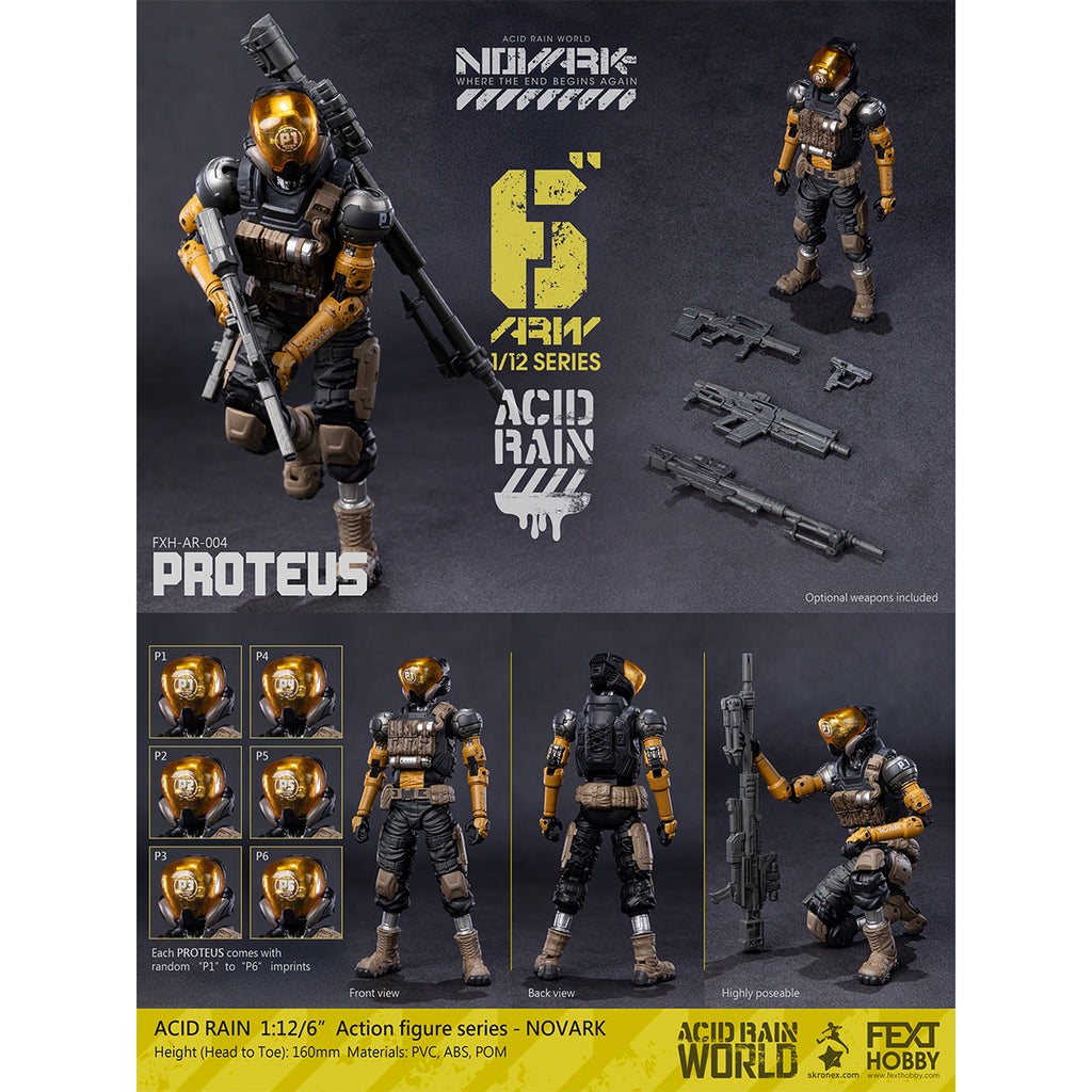 - Based on Acid Rain World, Part of the Fext Hobby Acid Rain series, Multiple points of articulation, Interchangeable parts and accessories, Proteus features one of six randomly distributed different designs on its helmet and arms, Helmet and arm design variants are random.