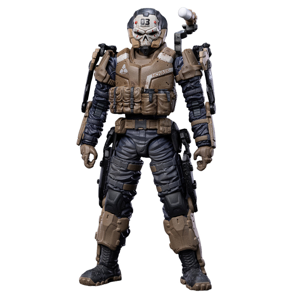 - Packaging Contents: War Banner figure, Removable helmet, Exoskeleton shoulder unit, Shoulder cannon, Pistol, Rifle, Pair of leg exoskeleton parts, 4 Connection parts. Other figures shown not included (sold separately)