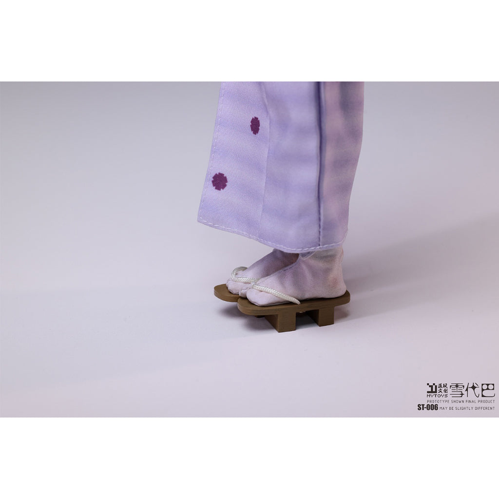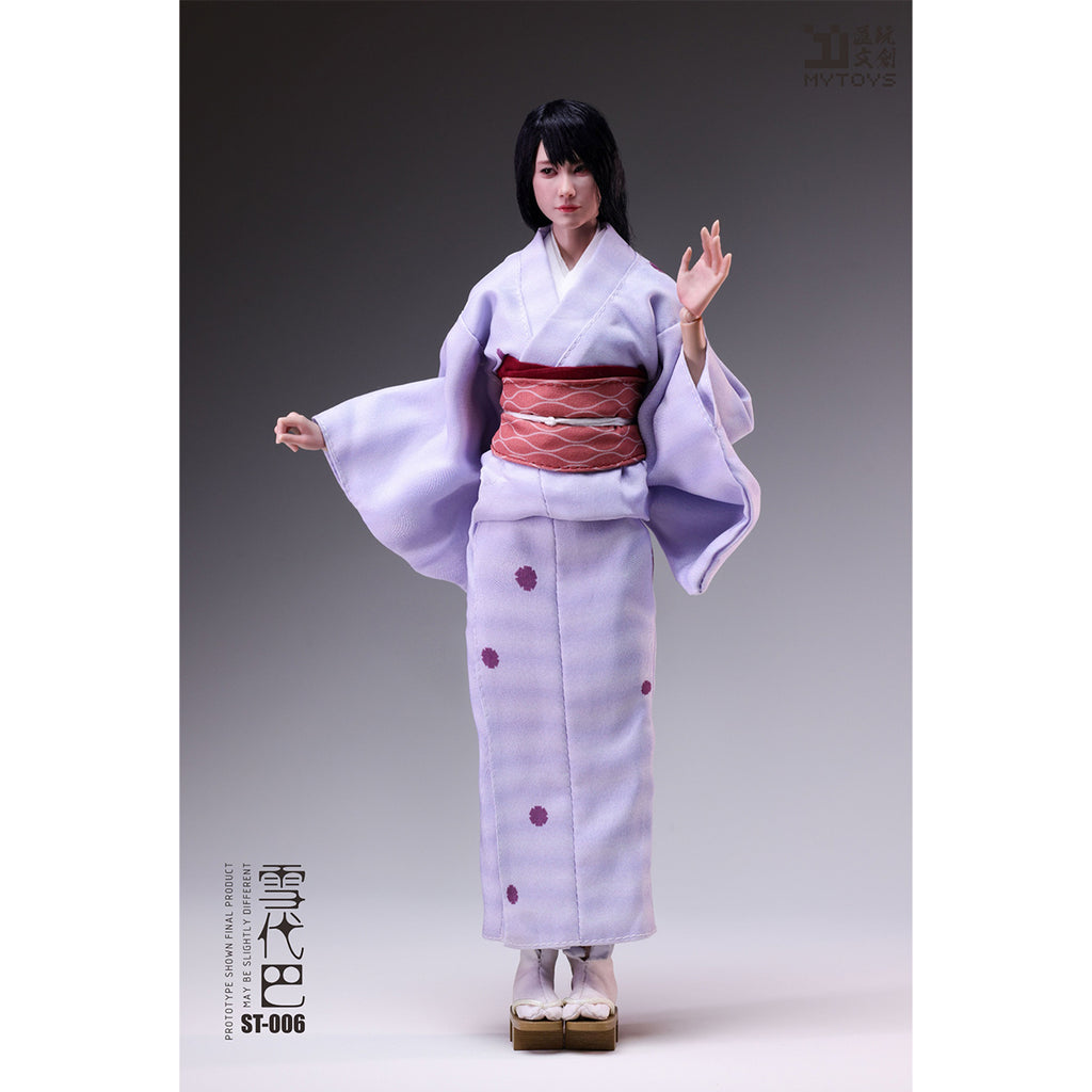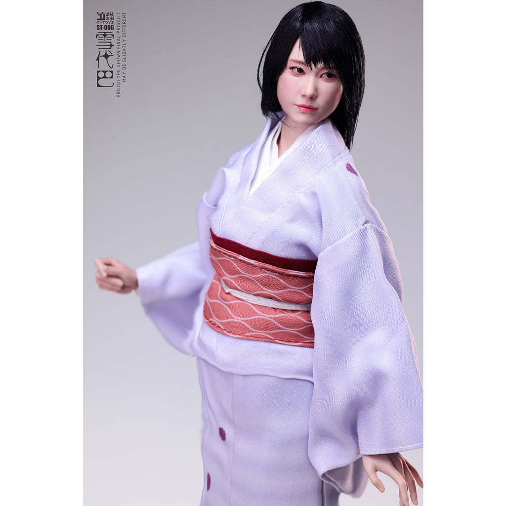 - Character Content: 1/6 Scale Realistic Articulated Eyes with High-Temperature Silk Hair Implant Head Sculpt, Articulated Body, 6 Interchangeable Hands, Kimono Undergarment, Juban (Under-kimono), Kimono, Nagoya Obi A, Nagoya Obi B, Obi-age (Sash Tie), Geta (Wooden Sandals).