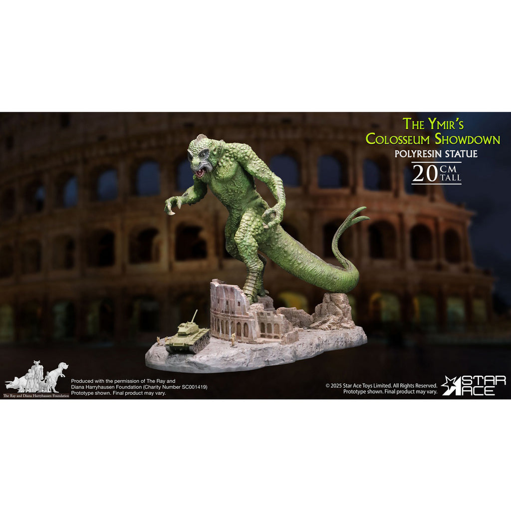 - Star Ace presents: The Ymir’s Colosseum Showdown – A Ray Harryhausen Tribute. Step into the thrilling finale of 20 Million Miles to Earth (1957) with this intricately crafted polyresin diorama, recreating the Ymir’s legendary clash against military forces in the heart of Rome.