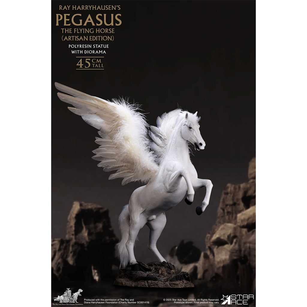 - Legend Ascendant: The Star Ace Pegasus Statue – A Tribute to Ray Harryhausen’s Cinematic Wonder. Commanding attention at 50cm tall, this exquisite Pegasus statue captures the creature’s iconic rearing stance—wings dramatically unfurled, front legs raised high as if moments from galloping into battle.