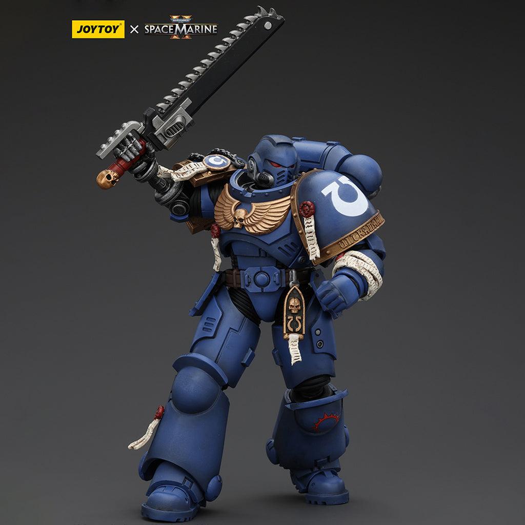 • Dive into the epic universe of Warhammer with the JOYTOY 1/18 Space Marines 2 Uitramarines Brother Chairon. This figure brings the Horus Heresy to life in stunning detail.