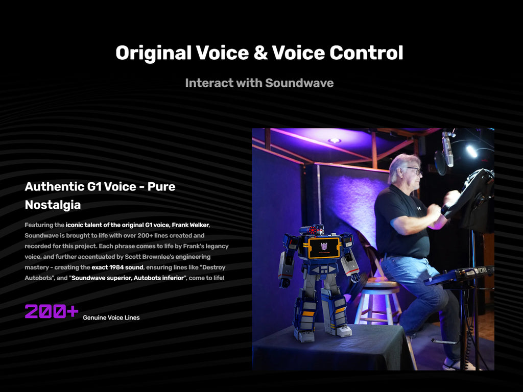- Includes 48 voice commands and 200+ official character sound effects for a fully immersive audio-visual experience. Features custom-recorded lines by Frank Welker, the legendary original voice of Soundwave, recorded exclusively in studio for this robot.