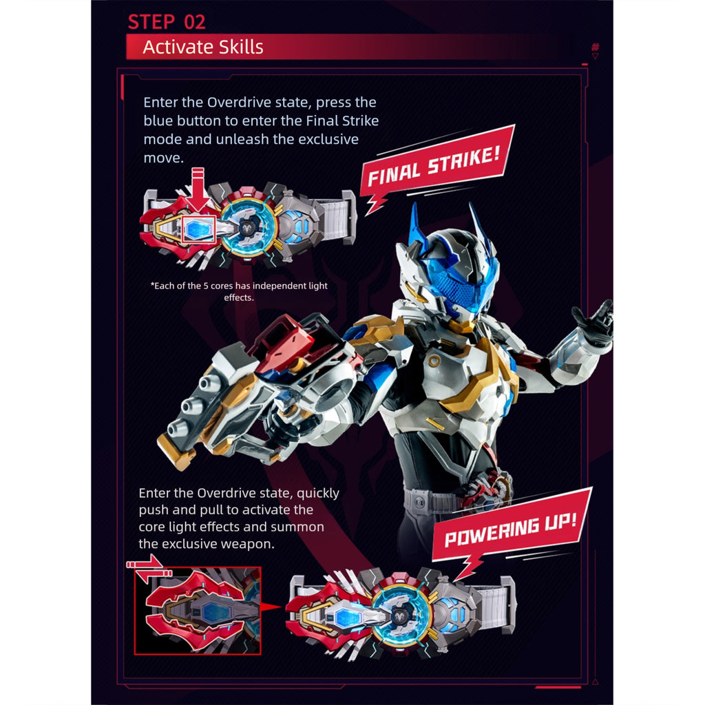 - Character Content: Battle Over Limit Belt, 5 Phantom Cores (Holy Horn core, Shadow Blade core, Sky Scale core, Thunder Sprint core, Blazing Claw core), Ring connector, Extension strap.