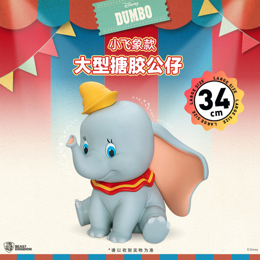 • This Dumbo-shaped functional figure stands 33.9 cm tall and features a circus-themed design with a yellow hat, red scarf, and big ears.