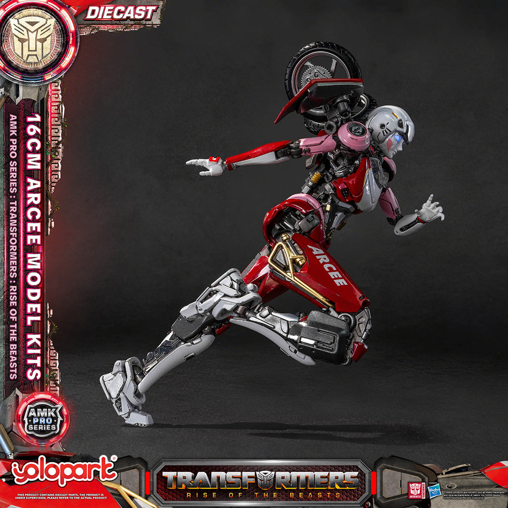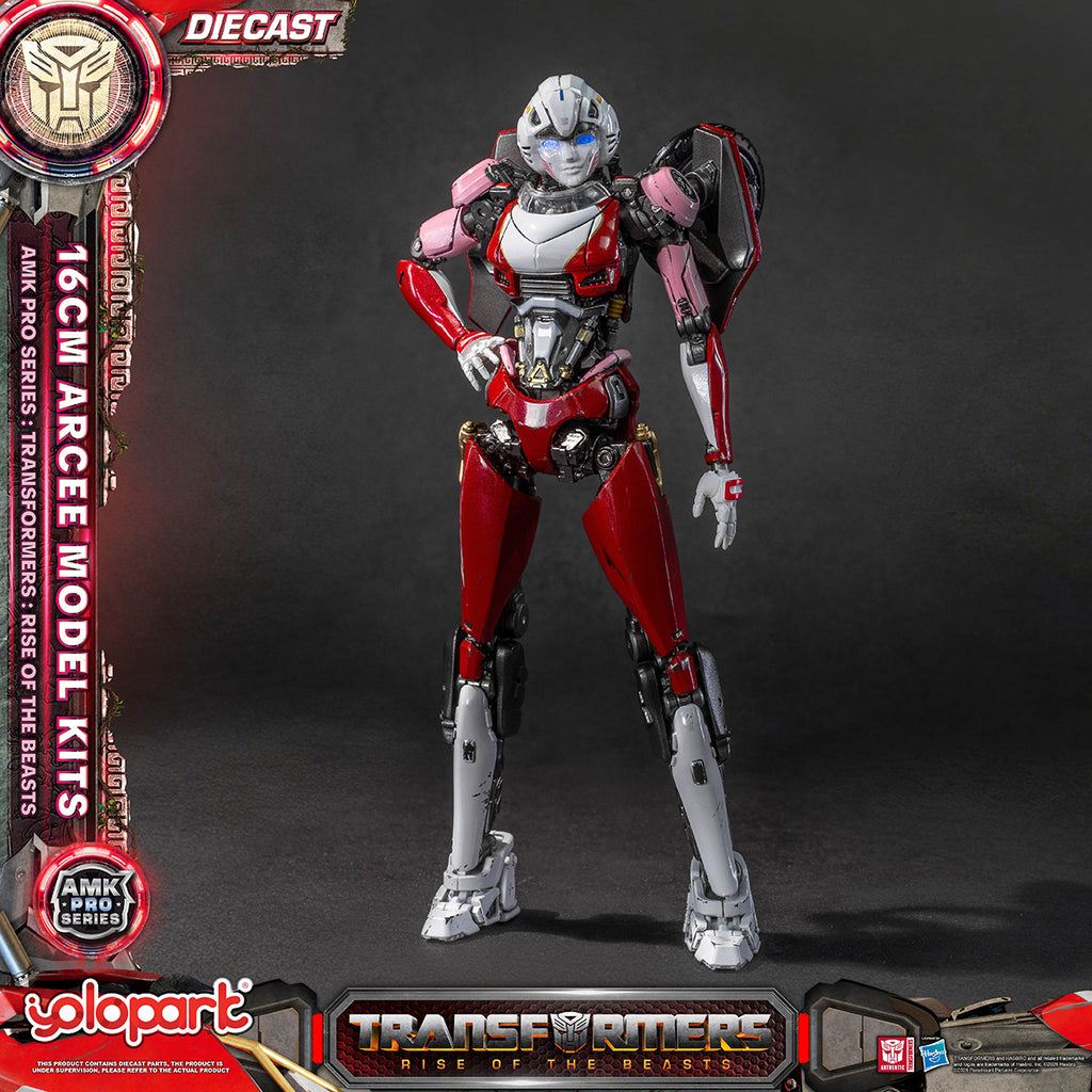 - Product configuration: 1x Arcee figure (main body), 2x Twin Ion Blasters, 1x Poker-face head, 1x Human-like face/head, 1x Standard head hood, 1x Goggled head hood, 6x Interchangeable hands, 1x Power display base (includes stand).