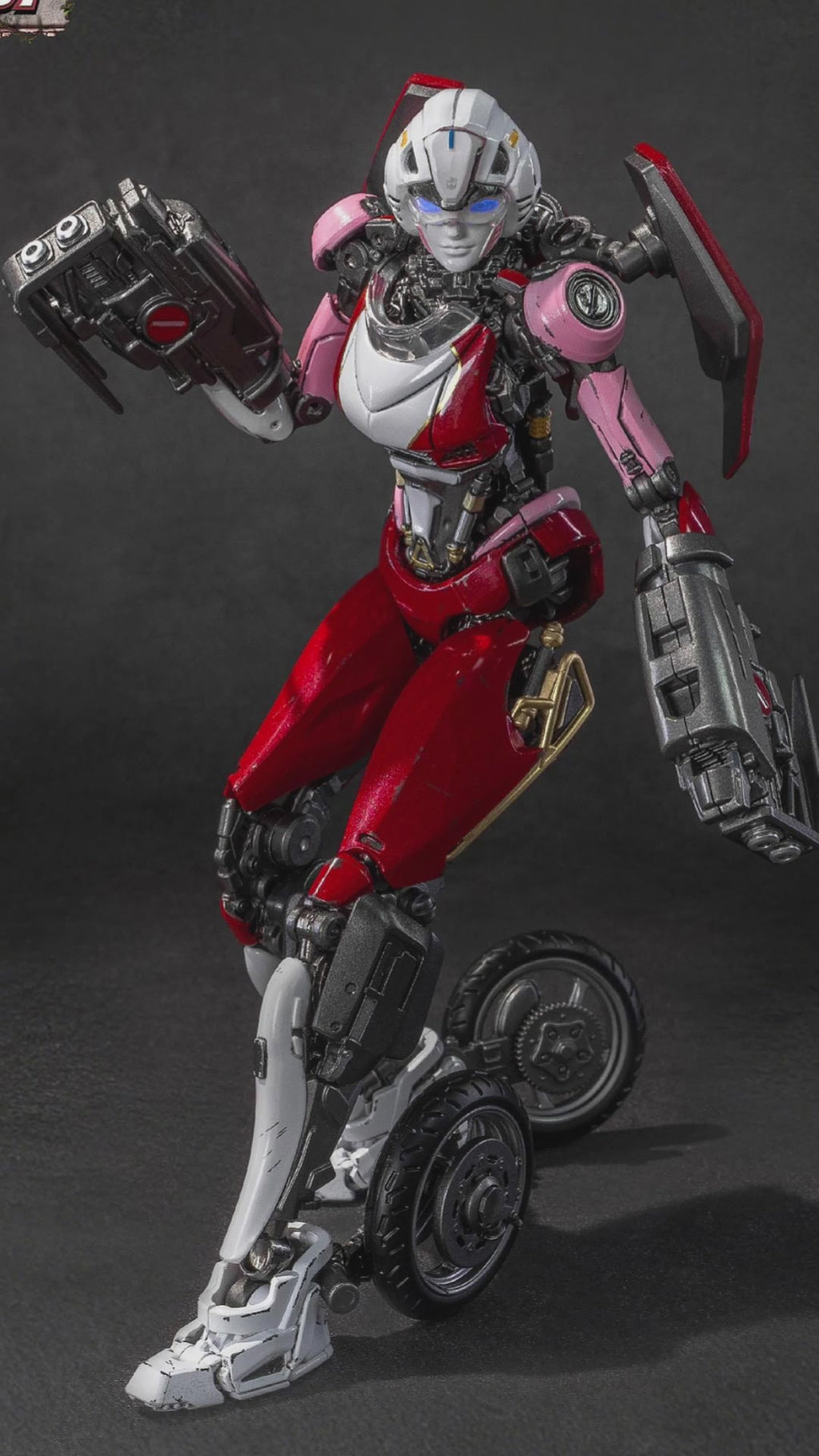 - The two rear tires can be mounted to the heels; combined with the display stand, this allows recreation of the film’s dynamic combat pose where Alxi slides close to the ground in robot form.