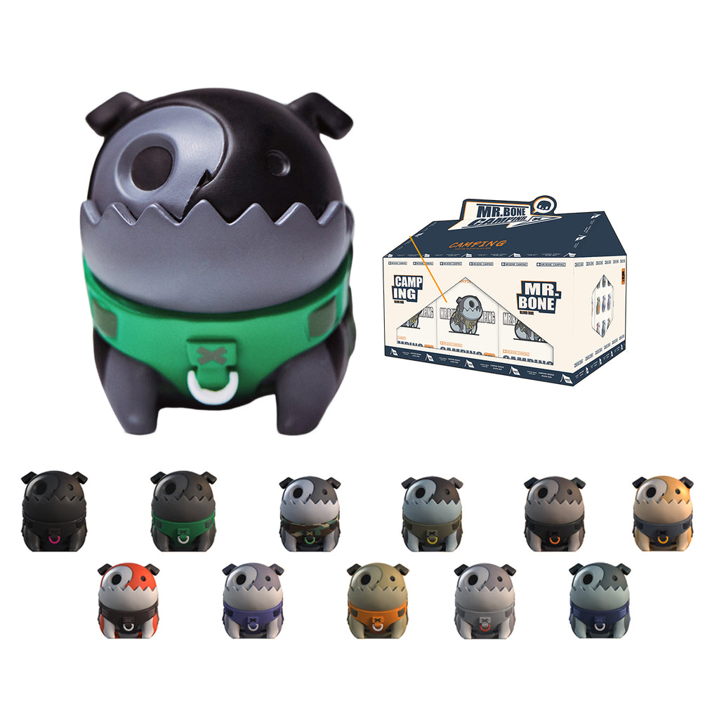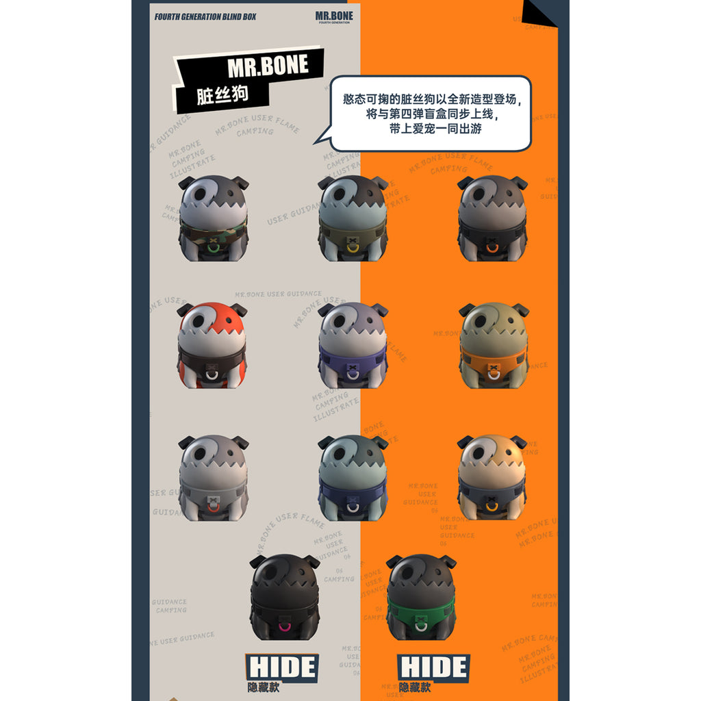 MR.BONE Fourth Generation Camping Dirty Silk Dog Sitting Pose Blind Box Figure