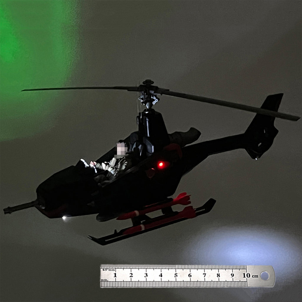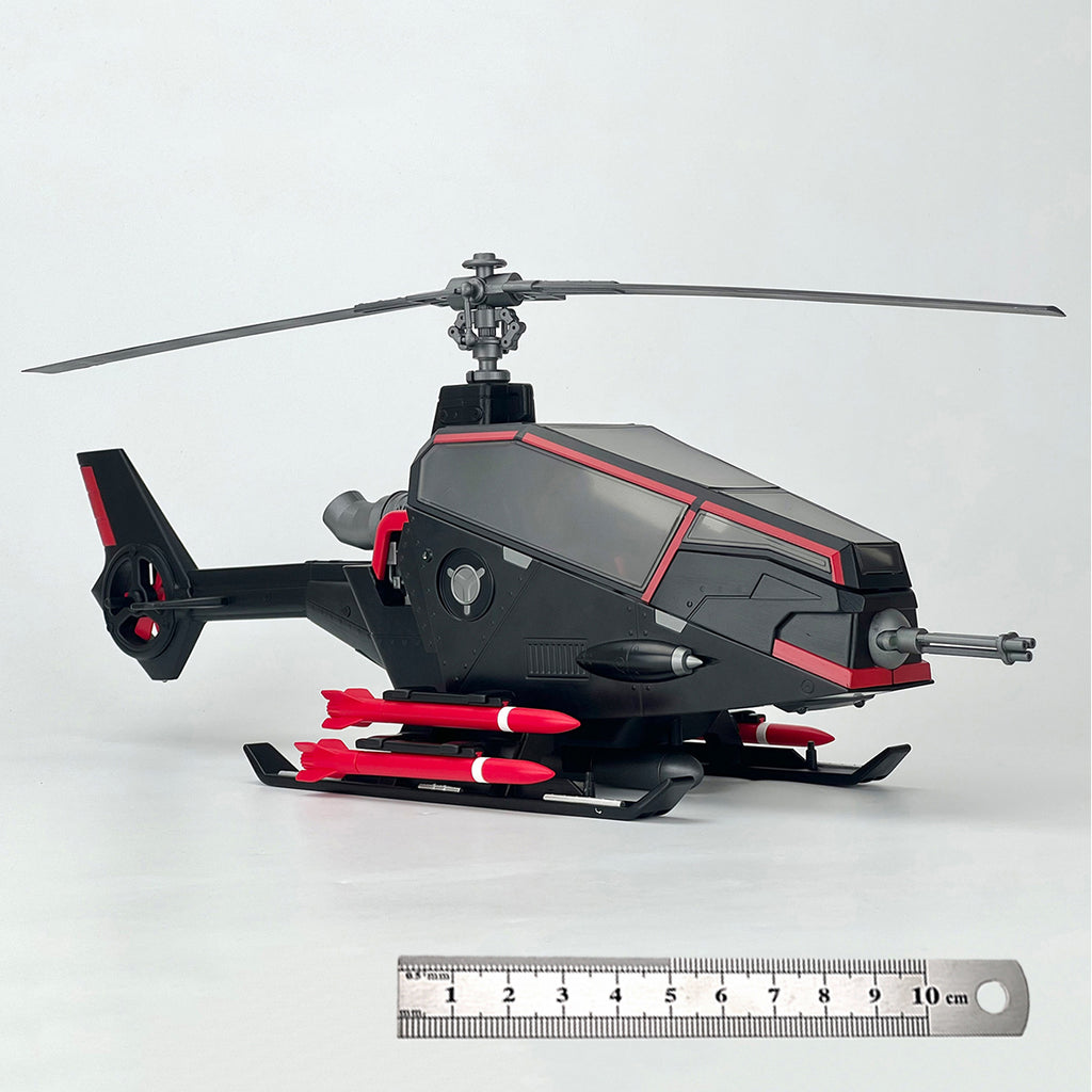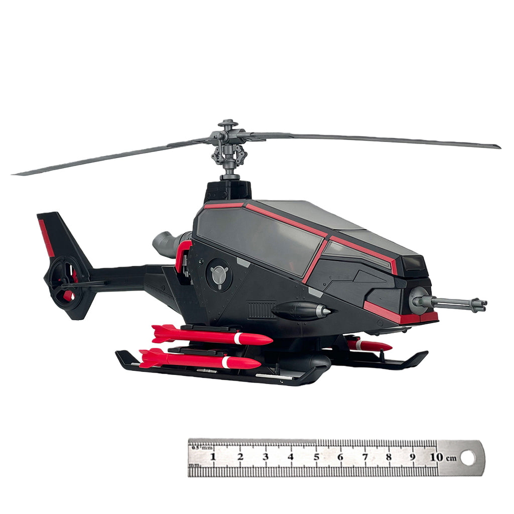 • Approximately 23.25 x 9.5 x 7.5 inches (59cm x 24cm x 19cm), Made of plastic, Can fit 1/12 scale figures, Motorized rotor blades, Some assembly required.