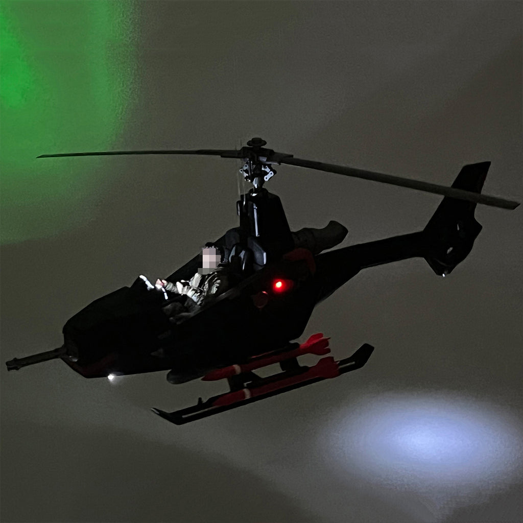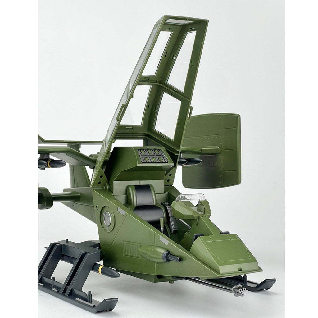 - Approximately 23.25 x 9.5 x 7.5 inches (59cm x 24cm x 19cm), Made of plastic, Can fit 1/12 scale figures, Motorized rotor blades, Some assembly required.