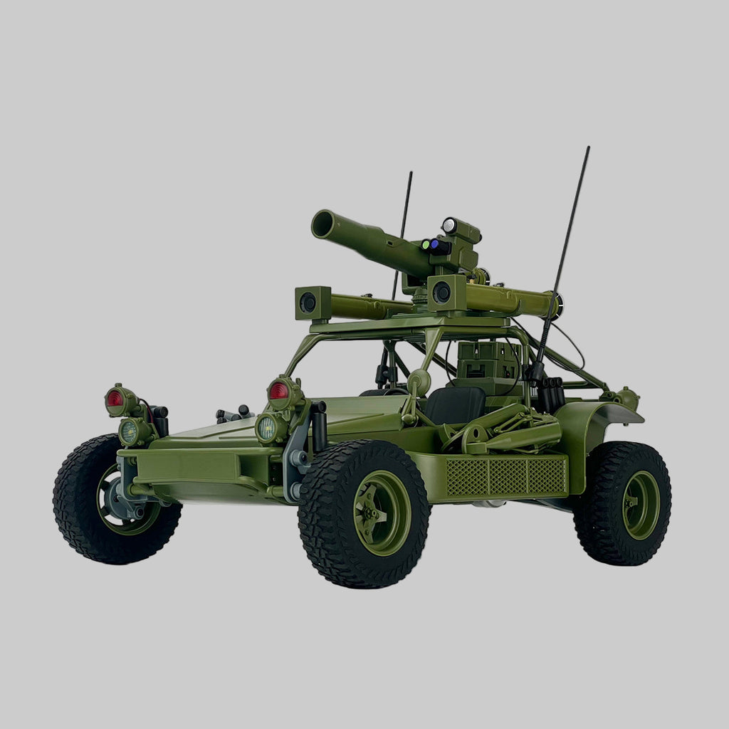 - Designed with great attention to detail, this vehicle includes a working steering wheel, optional 3rd seat and shelter, 2 rooftop missiles and adjustable seats.