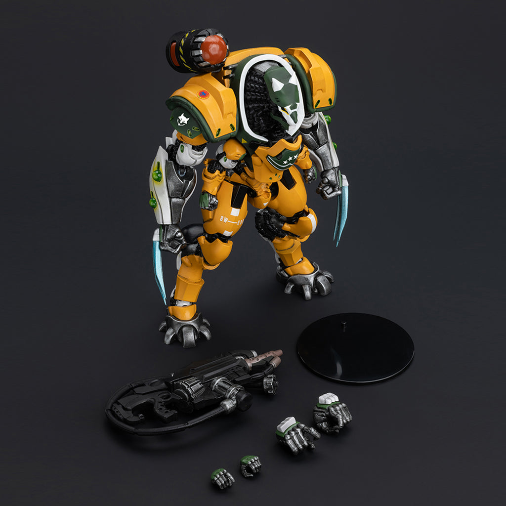 - FIGURE ACCESSORIES -- Heavy-Duty Flame-Ethrower x1, Mecha Replacement Shape Hand x2, Humanoid Replacement Shape Hand x2, Round Base x1.