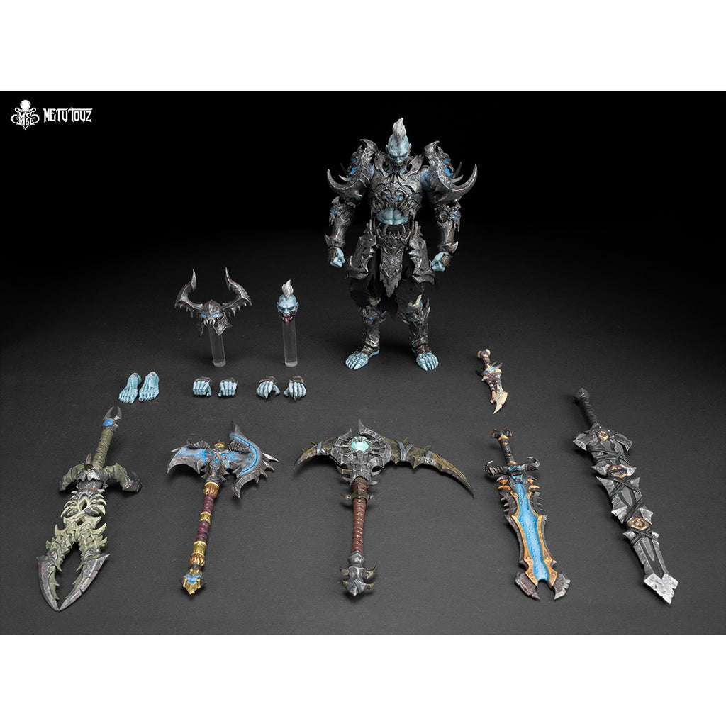 - Character Content: Interchangeable Head Sculpt ×1, Hand Positions ×3 pairs, Helmet ×1, Replacement Bare Feet ×1, Scytheblade with Withered Bone Vine Pattern × 1, Ice-Blue Rune-Adorned Battle Axe × 1, Soul Crystal Core Giant Scythe Axe × 1, Frost-Patterned Rune Holy Sword × 1, Black Iron Heavy Sword × 1, Withered Bone Dagger × 1.
