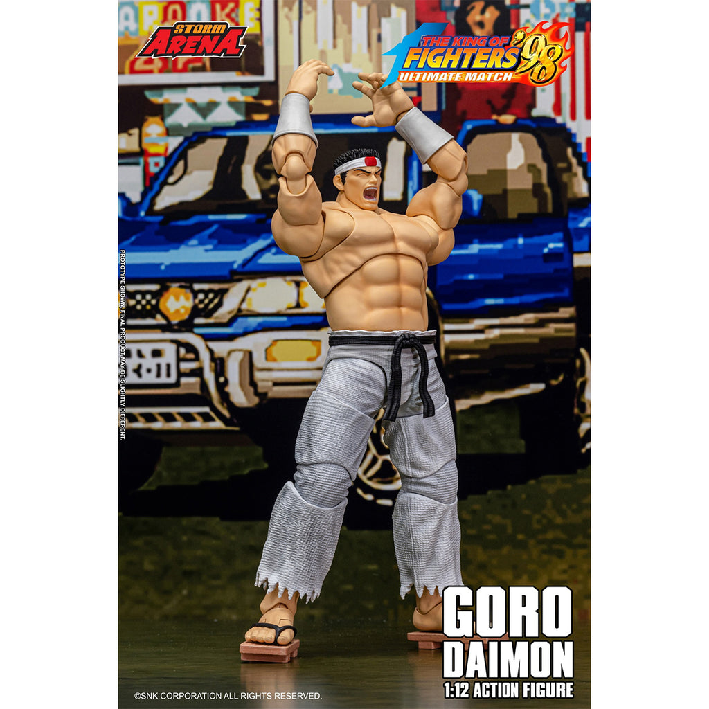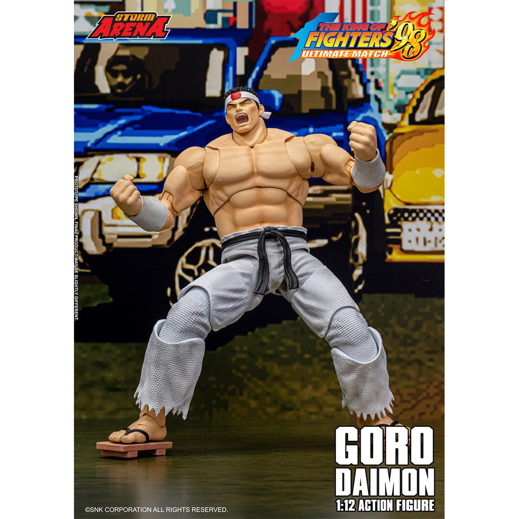 • Detailed Craftsmanship: This 1/12 scale action figure of Goro Daimon from "The King of Fighters '98" by Storm Collectibles showcases exquisite detailing, capturing the character's iconic look and dynamic poseability.