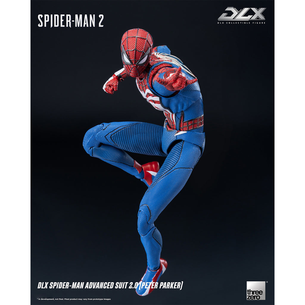 • From the video game Marvel’s Spider-Man 2, threezero proudly presents the DLX Spider-Man Advanced Suit 2.0 (Peter Parker)! After secretly leading a double life and taking a break due to multiple battles, Peter Parker wears the new Advanced Suit 2.0 to reclaim his Spider-Man identity and team up with Miles to protect Marvel’s New York!