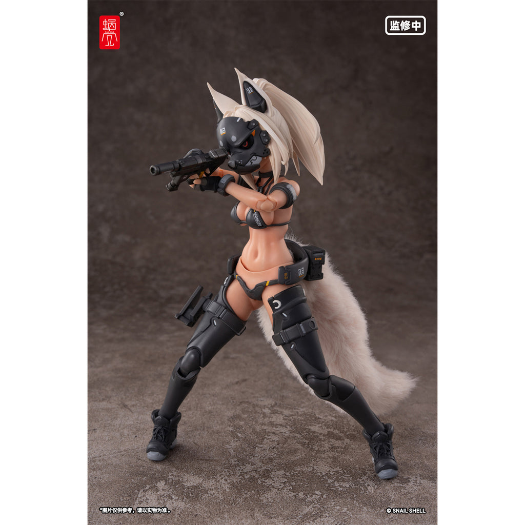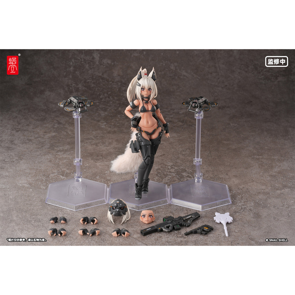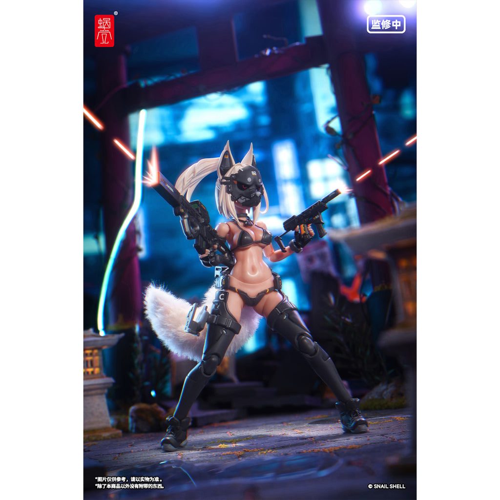 - Two face plates (smiling and open-mouth) with fully movable eyeballs—gaze can be adjusted using the included Mini Tool NEO; replacement bangs include a fox-shaped tactical mask that glows under black light.